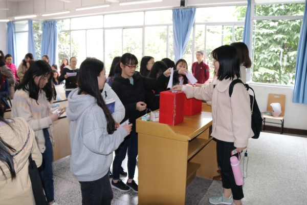 团支部书记“背靠背”满意度测评是指支部团员采取“背靠背”无记名投票的方式,对团支部书记工作做出客观、公正的评价。在各团支部团员青春激昂地合唱团歌后,PA官网各团支部测评工作有序开展。首先由主席团成员宣读测评规则,接着各团支部书记就团支部工作进行详细的述职,随后各团支部团员依次上台投票。唱票环节的一声声“满意”既传递出同学们对团支书们工作的肯定与支持,又体现出团支部内部团结和友爱。最后,经过监票人严格的监督和计票人认真的统计后,由主持人宣布投票结果,结果显示各班团支部书记工作都获得同学们的高度认可和满意。