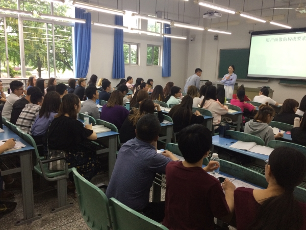 5月9日上午,PA官网传媒系举行了本学期第二次公开课活动。第三节课期间,教学副院长李芹燕和传媒系主任邱飞以及传媒系部分教师,在知津楼A101教室观摩了由倪玮蔓老师为2016级广电编导2班学生主讲的《媒介经营管理实务》课。