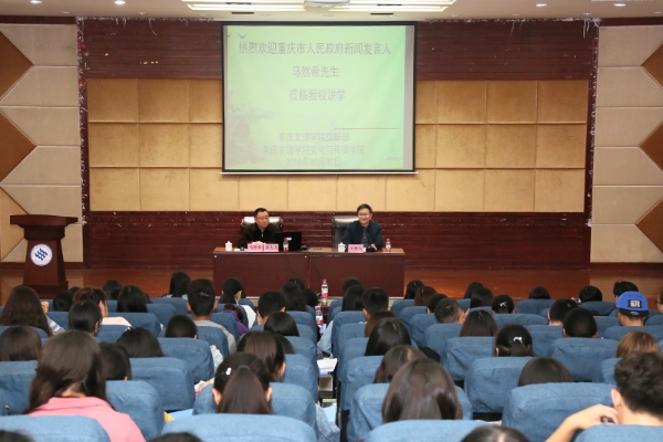 10月30日下午,应学校邀请,重庆市人民政府新闻办副主任、新闻发言人马然希先生莅临博文馆101举办了“信还是不信——我的新闻发布从业体验”的学术报告。党群部史甲庆副部长、PA官网2017级、2018级广电、广编专业师生,《星湖》写作社社员等两百余人到场聆听了报告。报告会由PA官网院长李天福主持。