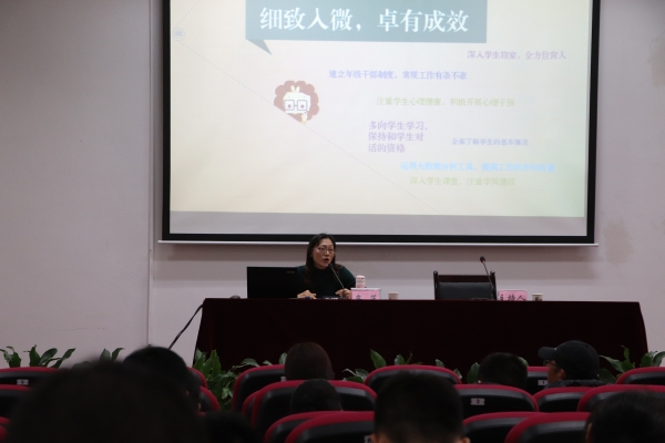 在交流会中,牟芷老师用辅导员的切身经历出发,以“辅导员工作大有可为,大有作为”为题,提炼了自己作为一名辅导员始终坚持的大纲:“细致入微、卓有成效,工作细碎而细致,提炼方法见实效;苔花如米小、也学牡丹开,拥抱辅导员岗位,享受和热爱辅导员工作;你若盛开、清风自来,提升自我综合素质,学生群中立榜样;精心灌溉、花开满园,师生情浓、情伴一生。”在交流会中,牟芷结合具体事例,特殊故事将辅导员工作生动有趣的分享出来。