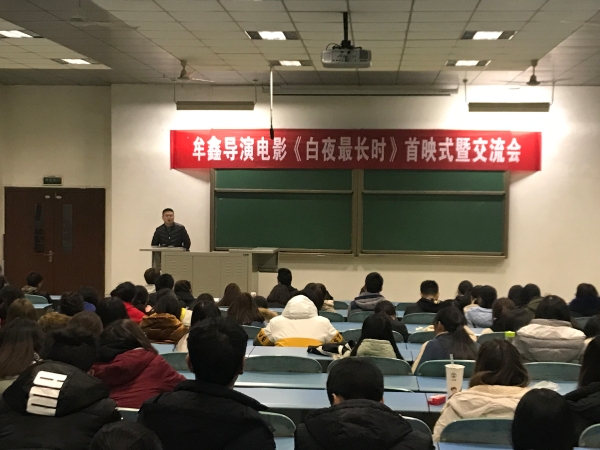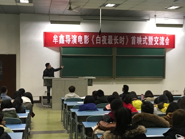 本次活动分为三个阶段,首先,牟鑫导演用半小时时间,讲述了其电影作品《白夜最长时》的故事来源、选题风险、主创及风格确定、导演阐述、实拍要点、剪辑及发行要点等;之后,师生们用98分钟共同观影了《白夜最长时》全片;最后,牟鑫导演与师生们对话交流,创作者与学子们就本片创作进行了大量且热烈的面对面交流,学子们也通过豆瓣网进行了观影后的在线评价。