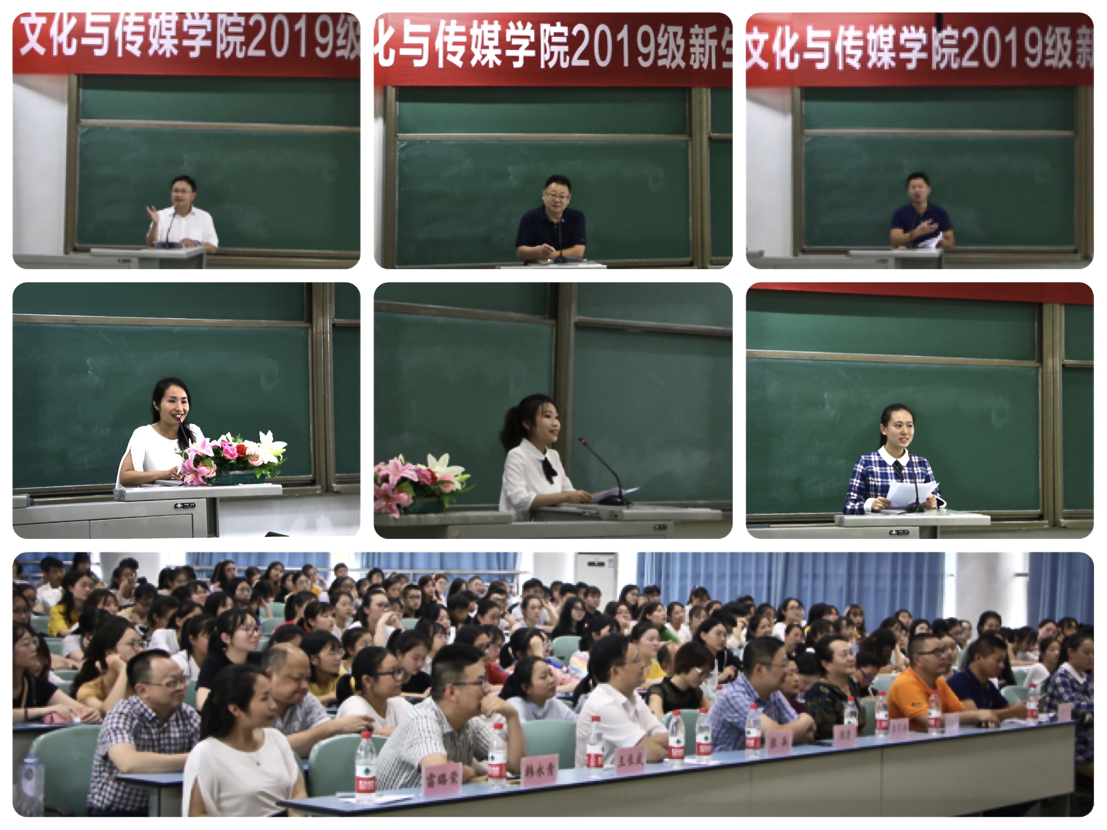 在庄严的国歌声中,开学典礼拉开了帷幕。随后雷璐荣作为教师代表发言,她风趣轻松地讲述了大学生需承担的责任、需付出的勤奋、需学会的自强自尊,并寄语新生愿他们都能为自己的未来谋一席之地;张兵学长作为校友代表从自身实际经历出发,用诙谐幽默的语言分享写作魅力与坚持不懈的奋斗精神,告诫新生们要有确切的自我认知,用努力去获得未来的辉煌成功;吴越作为高年级学生代表为新生送上来自学姐的欢迎和祝福,并结合经验建议新生要明确定位,制定目标,学会选择,用努力去寻找自己的闪光点;陈怡璇作为新生代表发言,她表达了对学院关怀的感谢和自己能在未来实践中得到蜕变的美好期愿,并号召新生在这浮躁时代仍要保持作为青年的真心与正心。