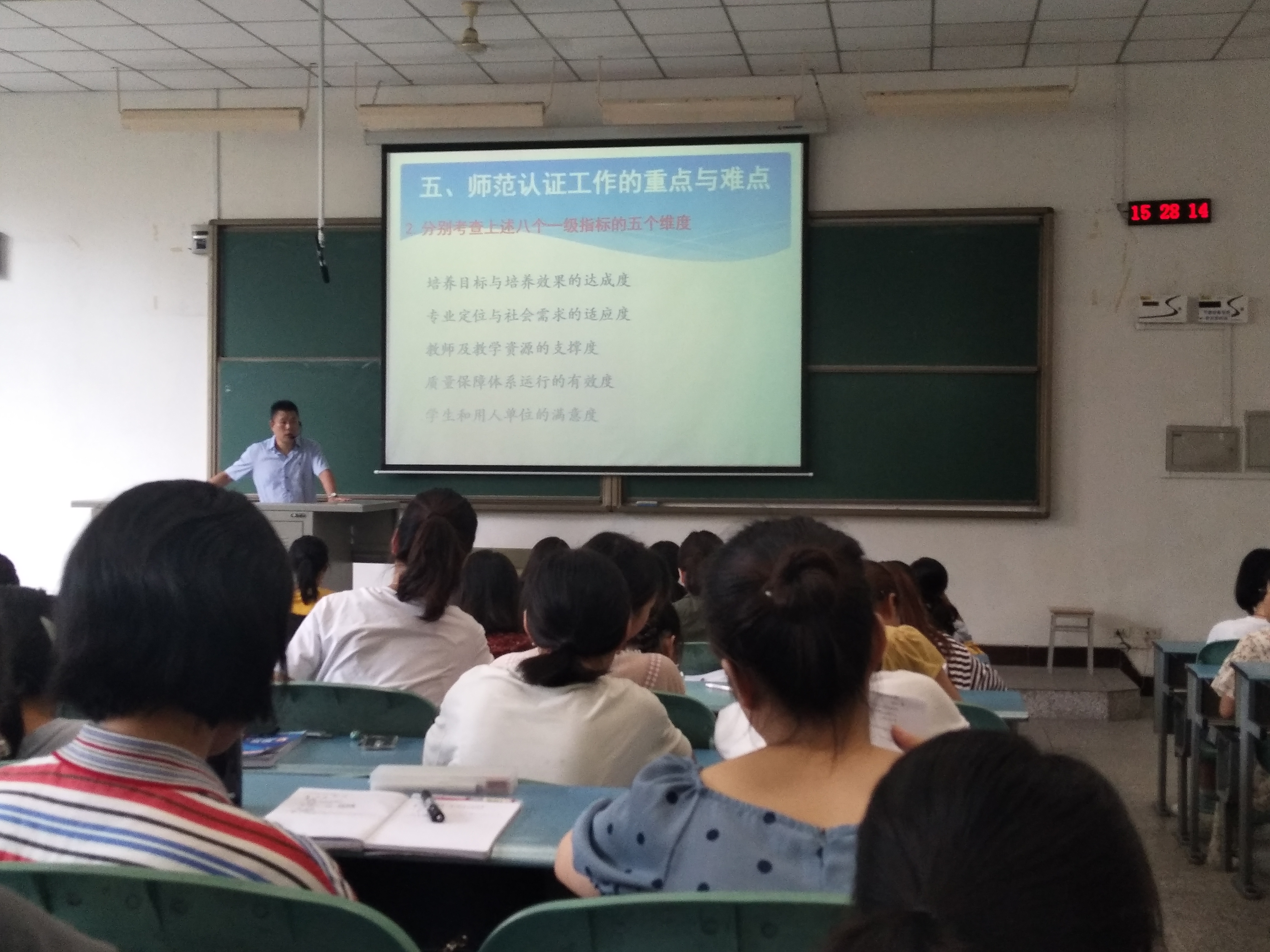 讲座的内容大致分为认证的缘起、认证的理念、认证的流程等六个环节,并重点就师范认证的紧迫性和重要性、师范认证的核心理念,以及师范认证工作的重难点等三个核心内容进行了详细说明。