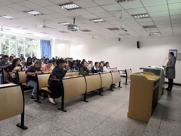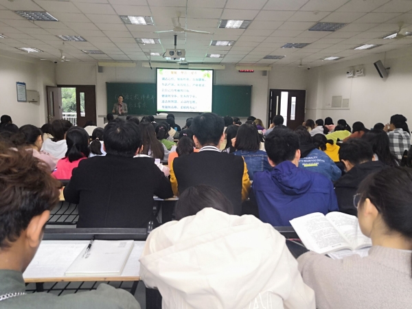 2019年11月16日下午,在知津楼D203,永川中学谭怡老师为汉师全体19级同学举办了一场题为“初中语文教师素养和职业需求”的专业导论讲座。