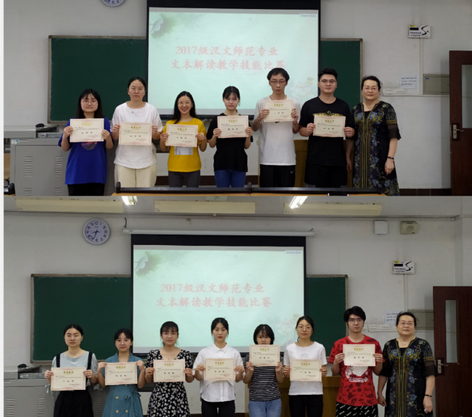6月30日,中文系“文本解读”教学技能比赛在知津楼A201教室举行。李东平老师、刘光明老师担任比赛评委,2017级汉文师范专业全体学生参加比赛角逐。