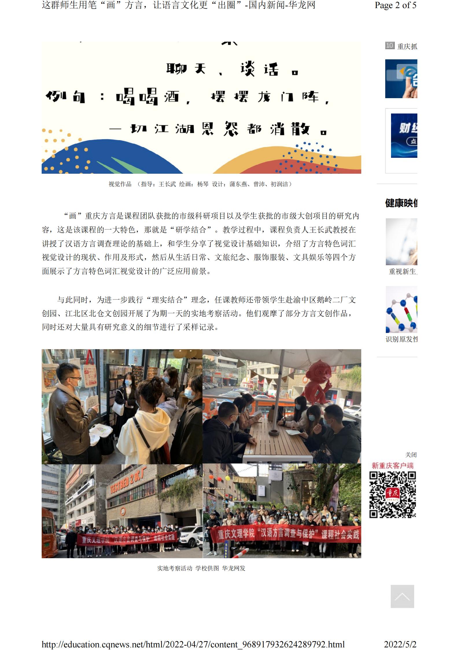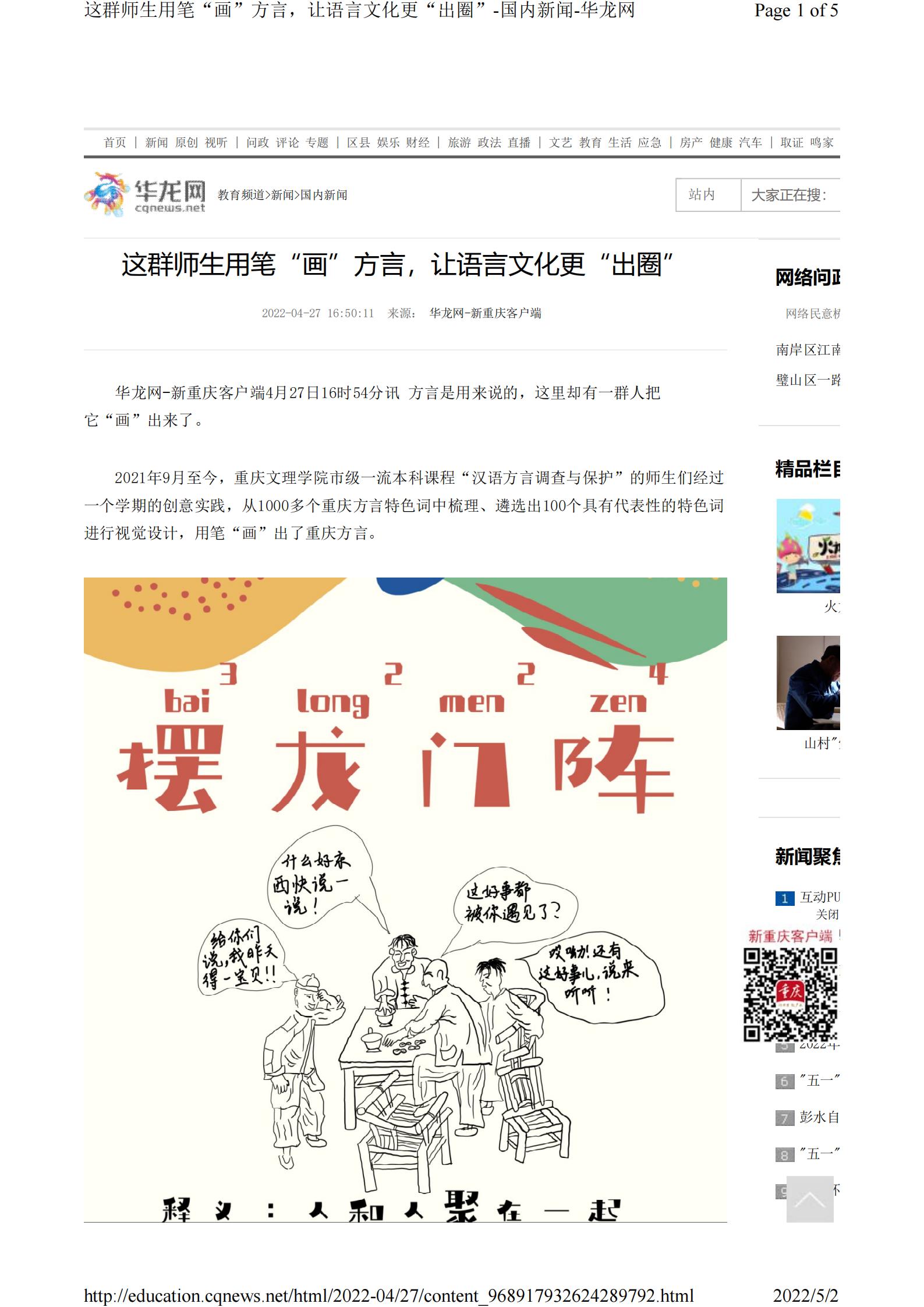 华龙网-新重庆客户端4月27日以《这群师生用笔“画”方言,让语言文化更“出圈”》为题报道PA官网市级一流课程师生“画”方言的事迹。以下为报道原文: